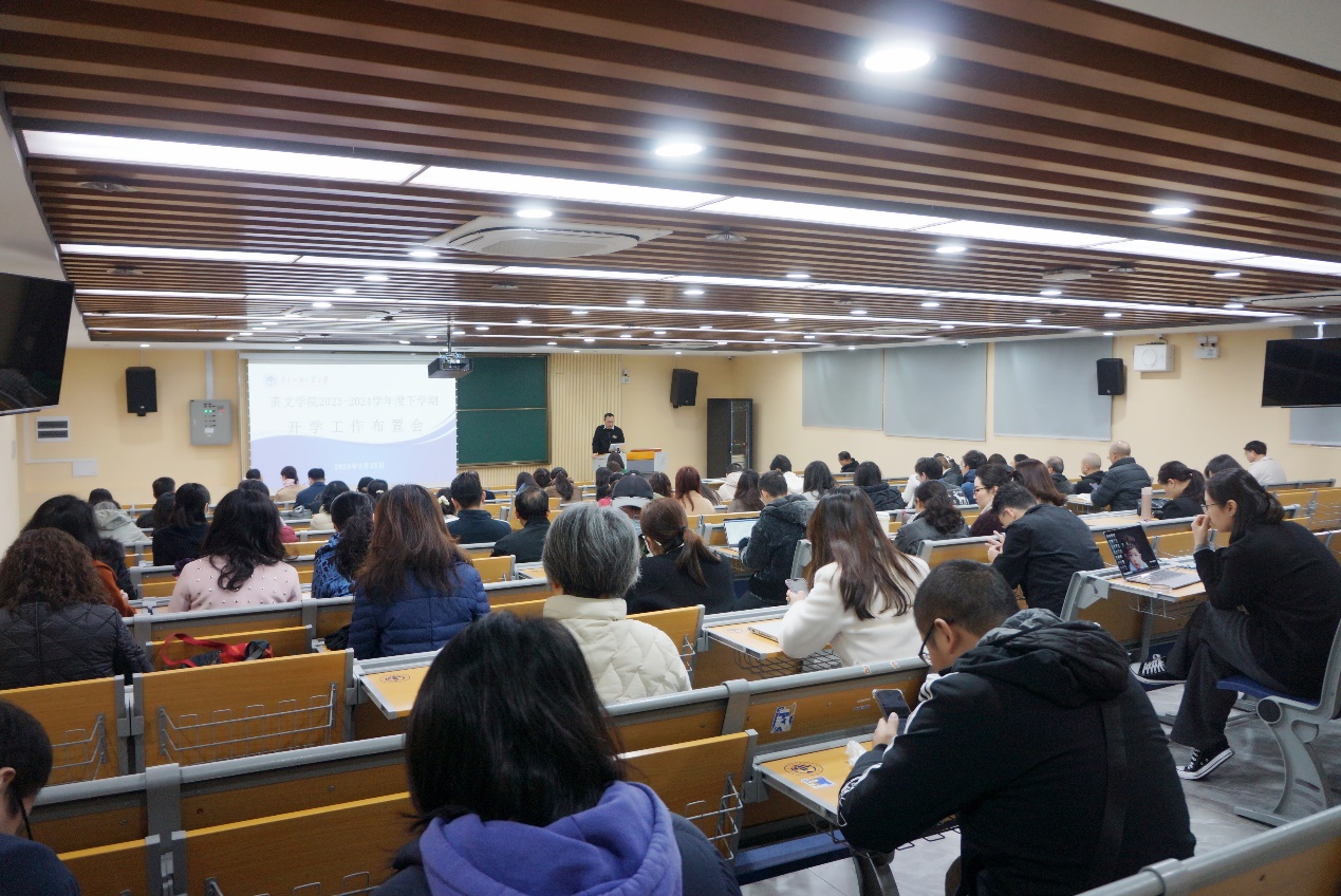 本网讯 2月25日上午,英文学院在一教117召开了新学期工作布置会,会议由学院党委书记纪彬主持,全院教职工参与了本次会议。