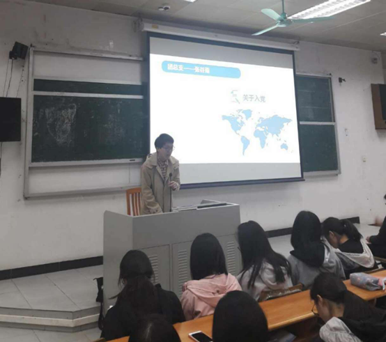 本网讯 3月8日晚7点,英文学院2017级年级大会于北二教217举行。英文学院大一级辅导员马骁老师出席会议,心理与实践部长黄雪雯主持会议,大一级全体学生参与其中。