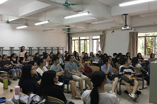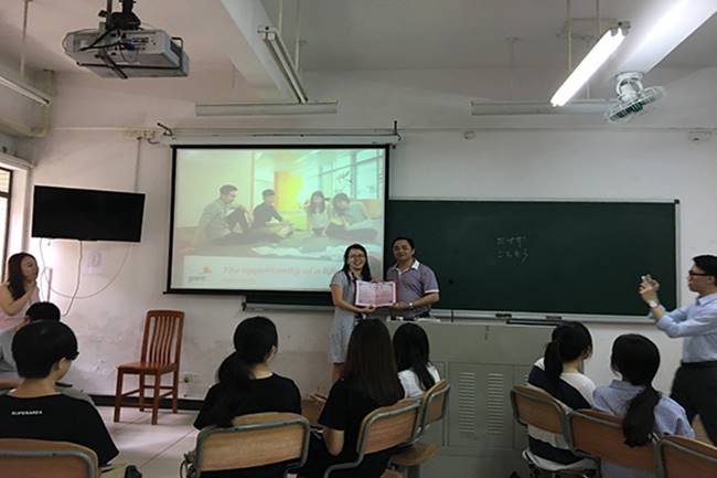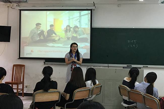 本网讯 6月15日下午2:30,英文学院举办的优秀校友交流会--普华永道职业生涯发展经验分享会在六教B204室举行,普华永道国际会计事务所(PWC)人力资源部高级经理、万博官网杰出校友朱慜(MindyZhu)及其工作伙伴EmilyRen、SantinoXiao担任主讲嘉宾。英文学院党委副书记何伟儒、2015级辅导员贾春成及2015级同学参加了本次交流会。
