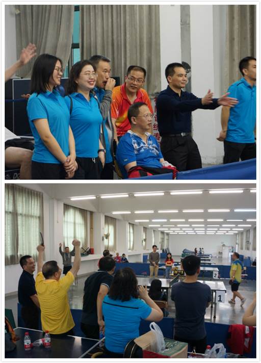 本网讯 4月20日,由大学工会组织的2019年教职工乒乓球团体赛在北校区举行,英文学院教工乒乓球队奋力拼搏、团结进取,后勤人员和拉拉队员用心服务、倾情助威,最终获得了今年教职工乒乓球赛团体第一名的好成绩。