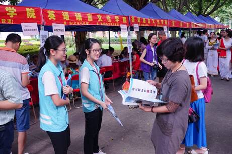 英文团学工作人员派发招生手册