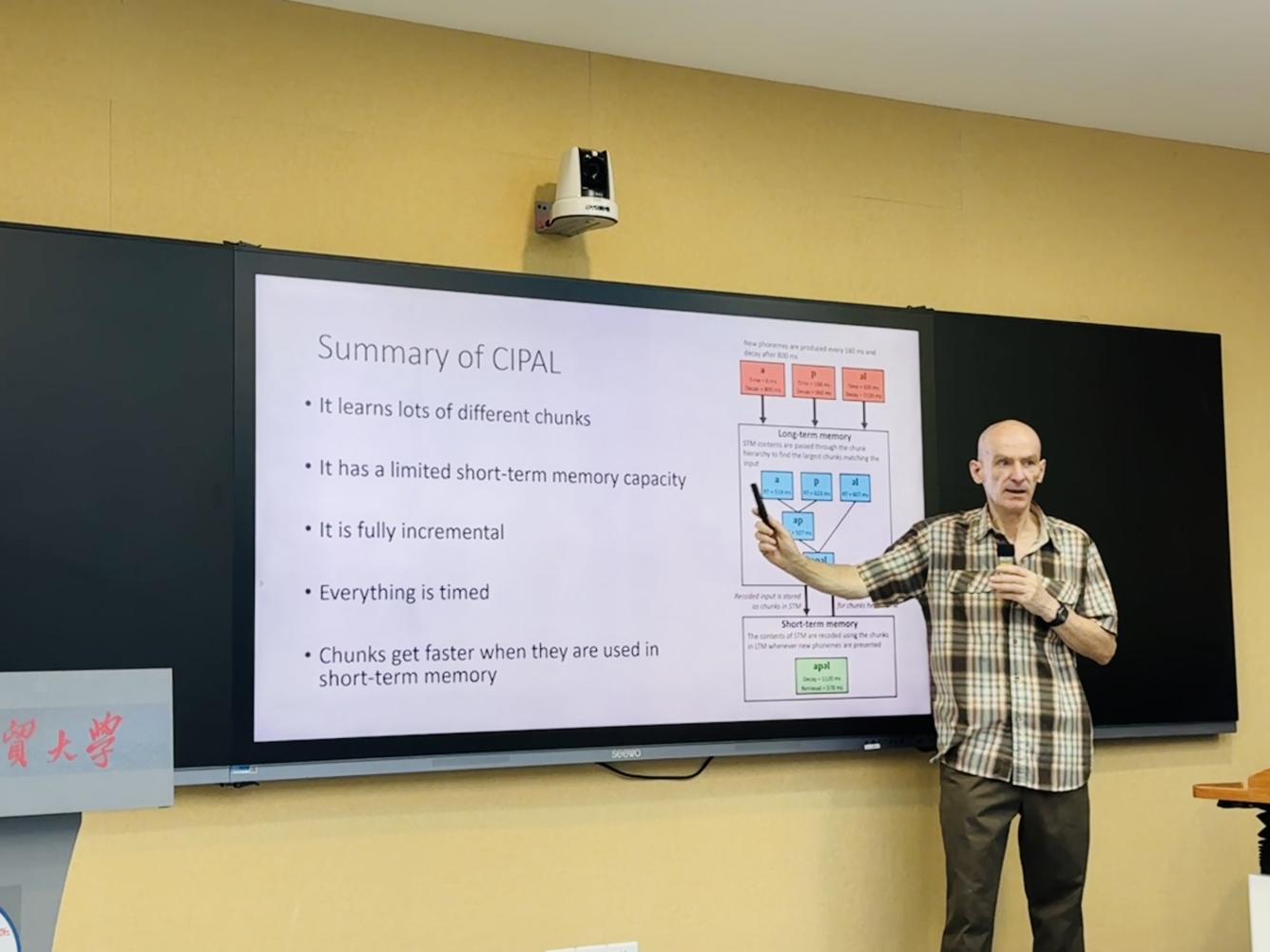 在9月9日的首场讲座中,Gobet教授系统介绍了他与团队提出的CIPAL理论(Chunk-based Incremental Processing and Learning)。该理论以“组块”(chunking)为核心机制,解释了婴幼儿如何从连续语音流中逐步识别并存储词汇。