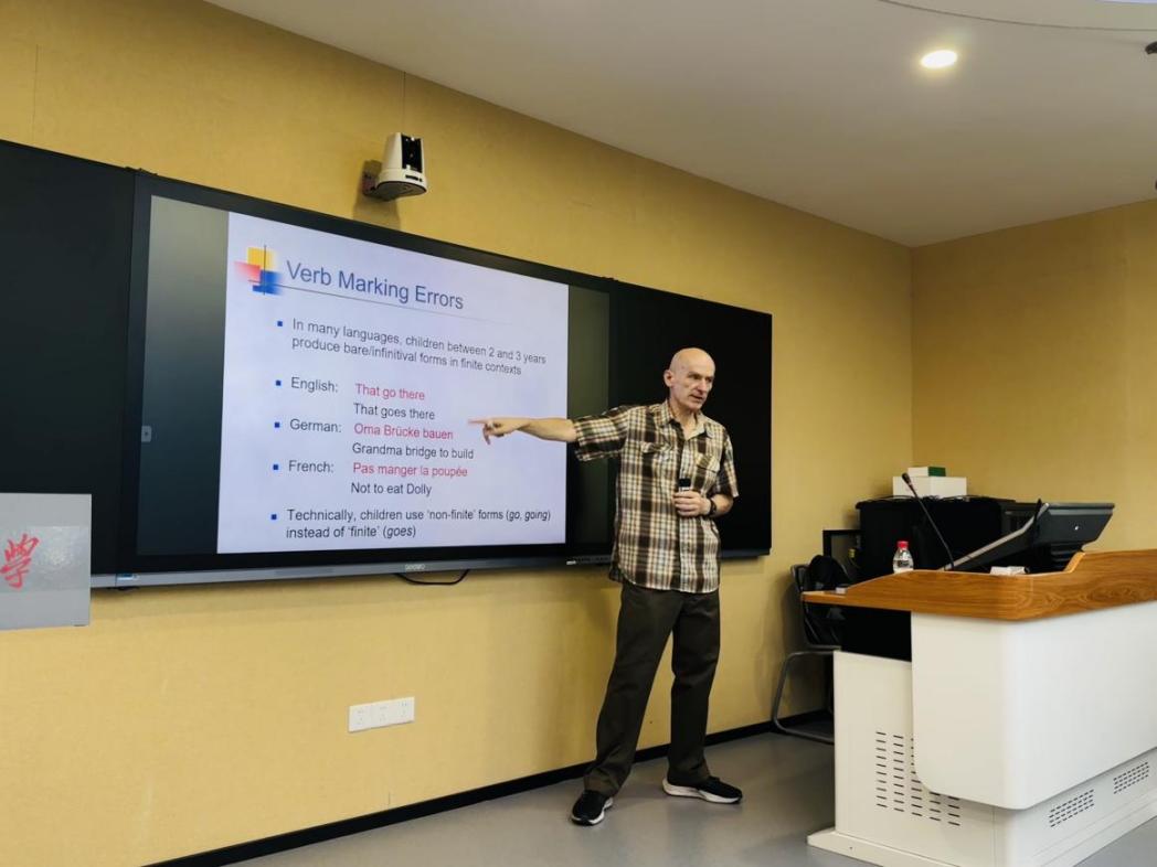 讲座现场,Gobet教授以生动的实例和清晰的数据图表展示了CIPAL在自然语言和人工语言中的表现,引发了在场师生对“语言习得是否真正依赖统计计算”的深入思考。